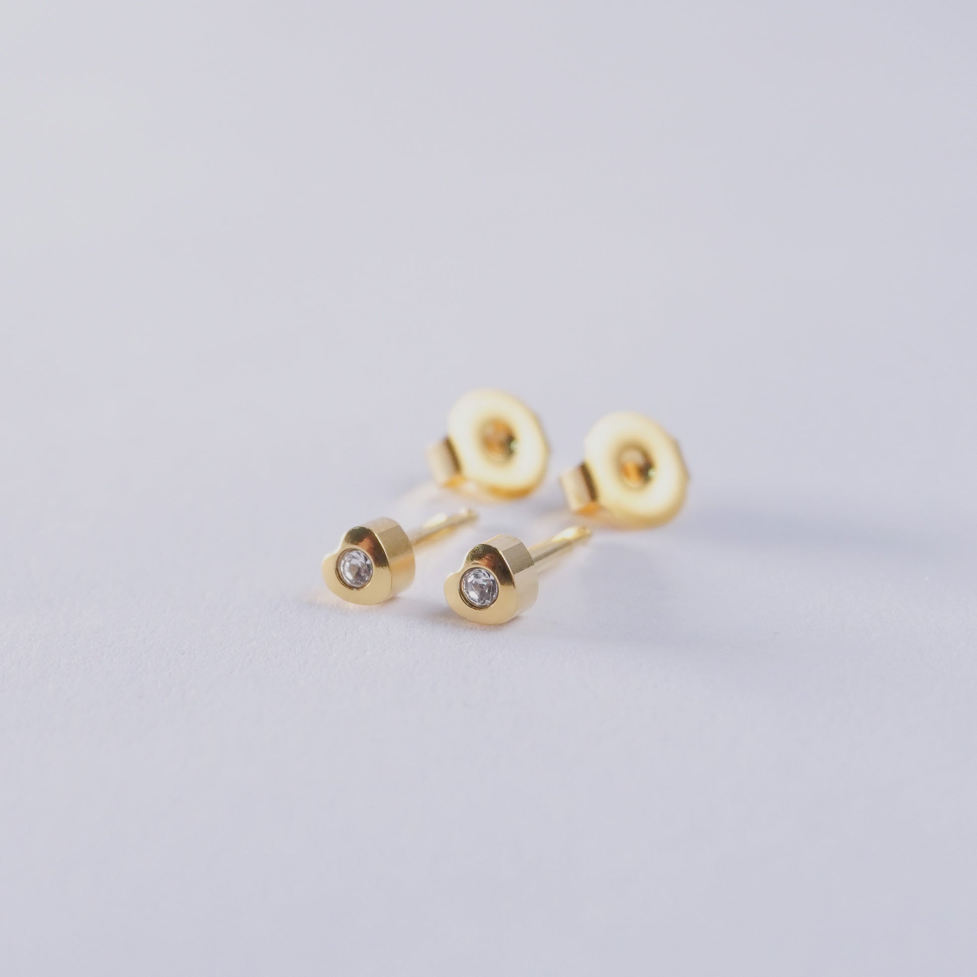 Expertly fabricated gold-plated earrings showcasing sophisticated minimalism. These superior adornments epitomize subtle luxury, consistently positioned among the most coveted selections for aficionados of timeless jewelry design. The Crystal Heart Head studs deliver uncompromising quality with enduring appeal.
